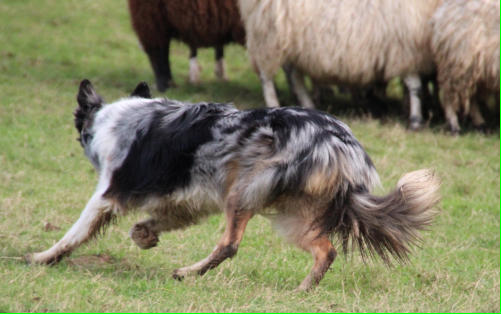 12.02.2017: Duncan und Don (D-Wurf) waren zu Besuch beim Hütetraining. Beide durften auch mal eine Runde